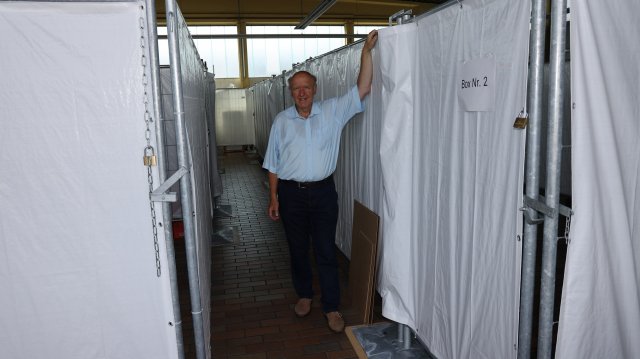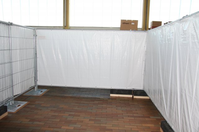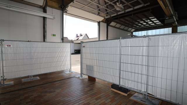 Der Boden ist gefliest. Die Halle wird zum Großteil über Deckenlüfter beheizt. Im Eingangsbereich befinden sich zusätzlich Warmwasser-Heizkörper.